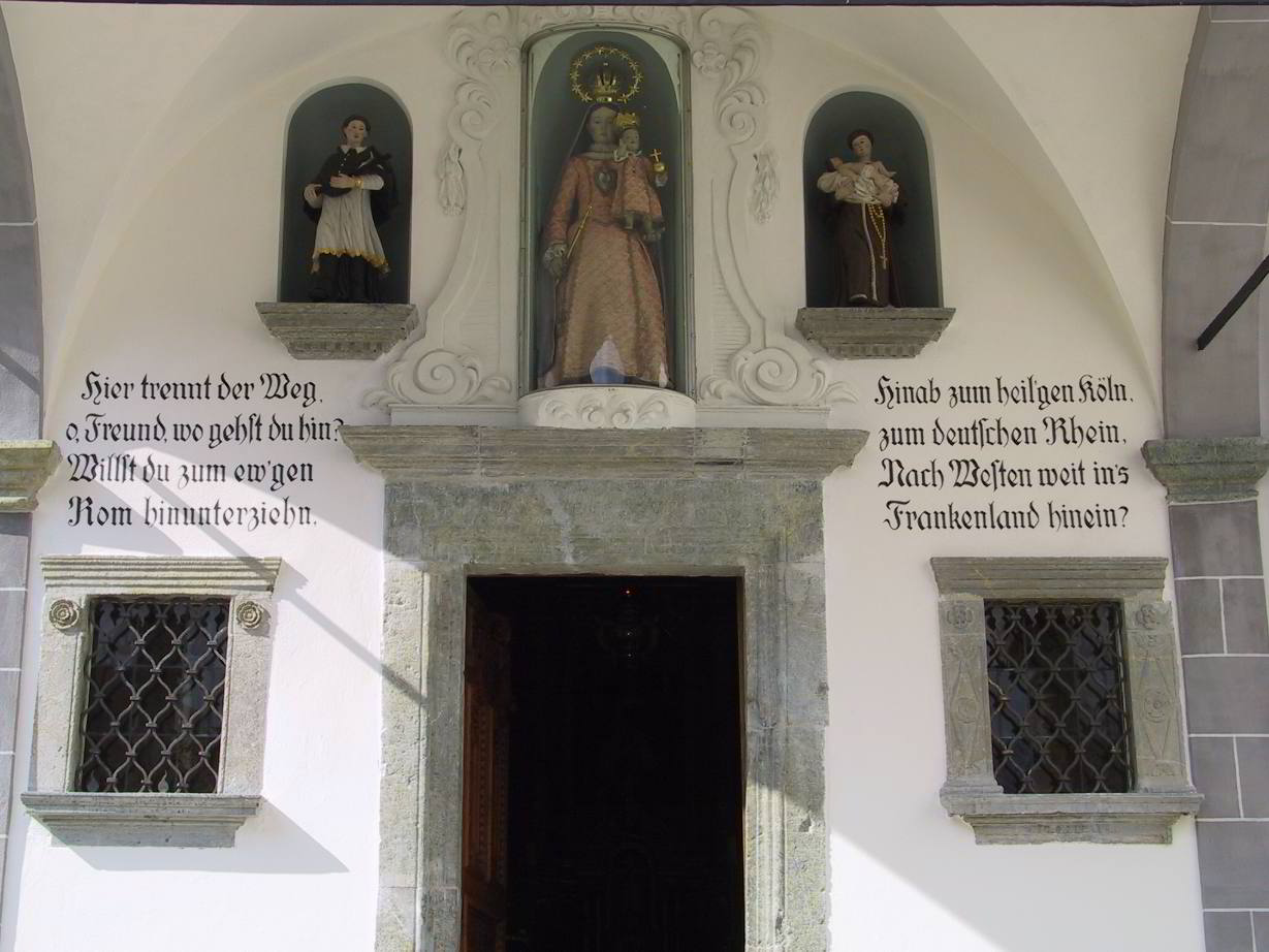 Die frisch restaurierte Kapelle in Hospental zeigt am Eingang seinem schönen Sinnspruch. |
