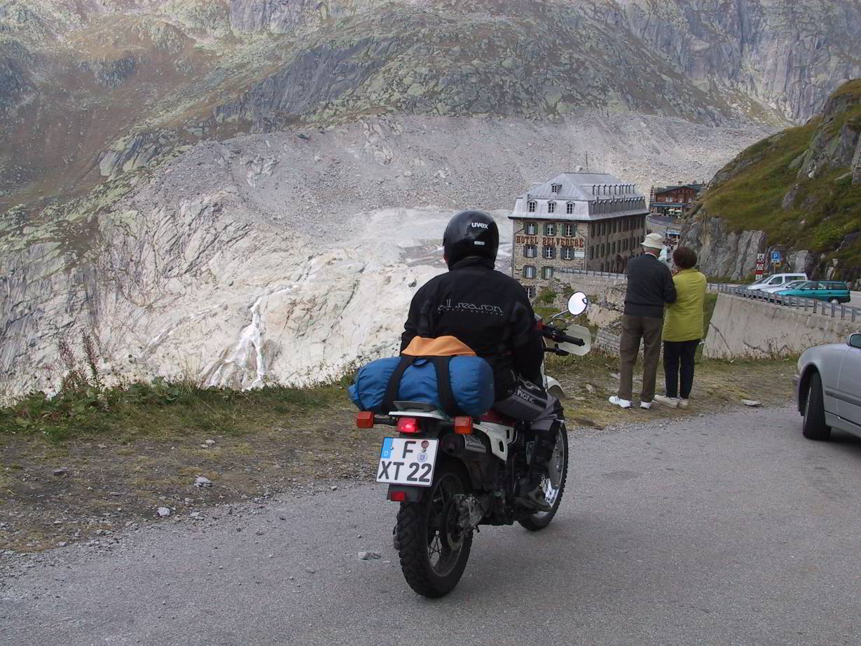 Hinter dem Furkapaß gelangt man zum Rhonegletscher bzw. seinen Resten beim Hotel Belvedere. |