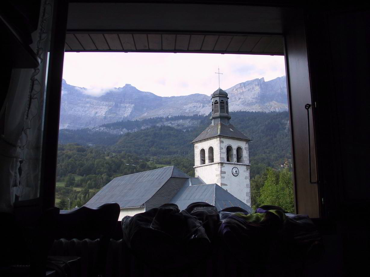 Schon in Frankreich: Morgendlicher Blick aus dem Zimmer auf die Dorfkirche. |