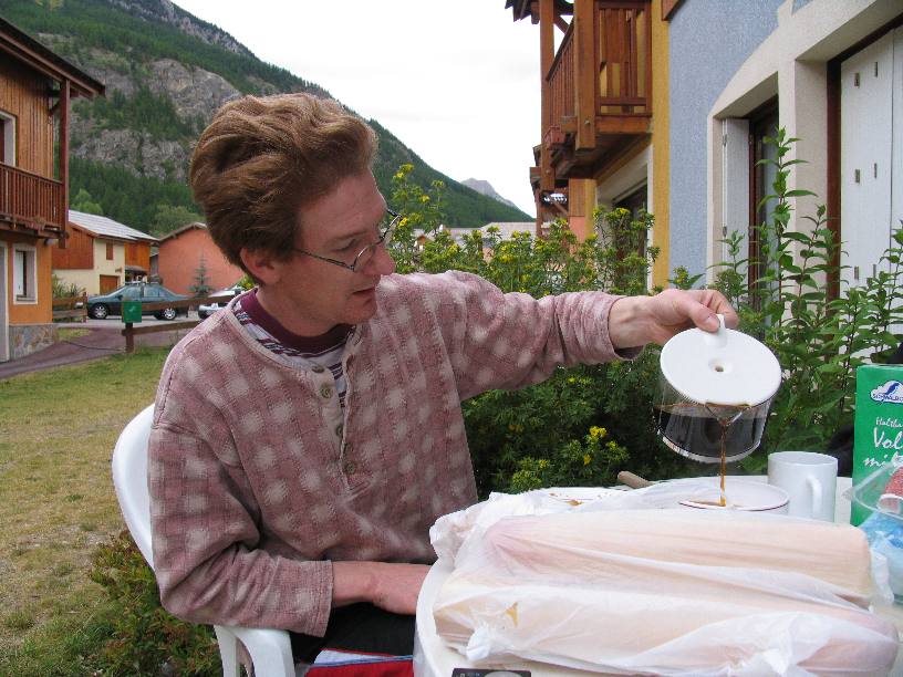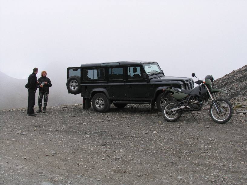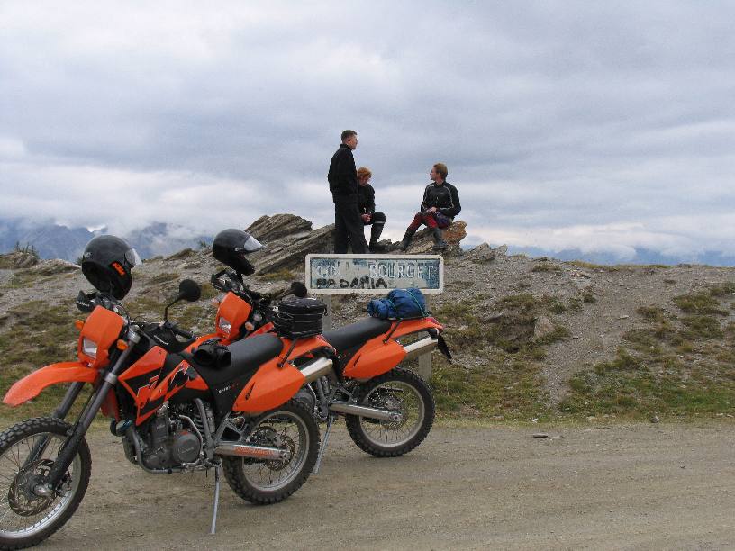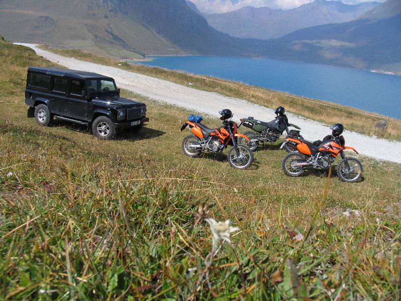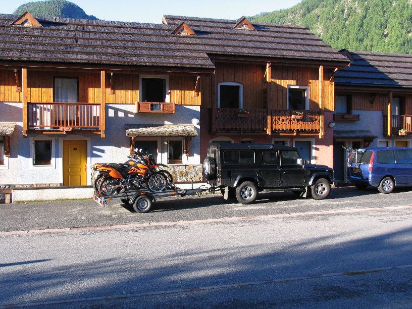 Mal wieder für eine Woche in die Westalpen war das Thema im Herbst 2005. Diesmal mit Hänschens Landy als Supporttruck. Es ging über Basel, Genf und Grenoble nach Serre Chevalier, einem Vorort von Briancon, der höchsten Stadt in den Alpen. Wir wohnten in einem gemieteten Reihenhäuschen in einer kleinen Feriensiedlung. Echt nett, wir frühstückten fast jeden Morgen draußen, bekochten uns selbst und hatten Glück mit dem Wetter. Danke an Hans für die Fotos! Alle breiten APS-Fotos sind von ihm, da bin ich auch endlich mal im Bild! |