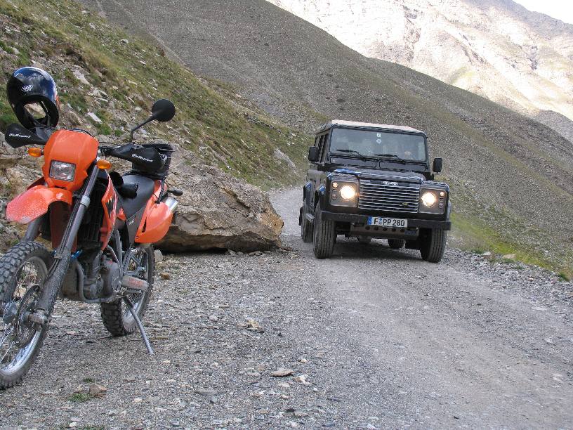 Zwischendurch stellten wir fest, daß die neuen KTMs in der Höhe etwas zu fett liefen. Durch entfernen des Ansaugschnöchtels bekamen sie mehr Luft. |