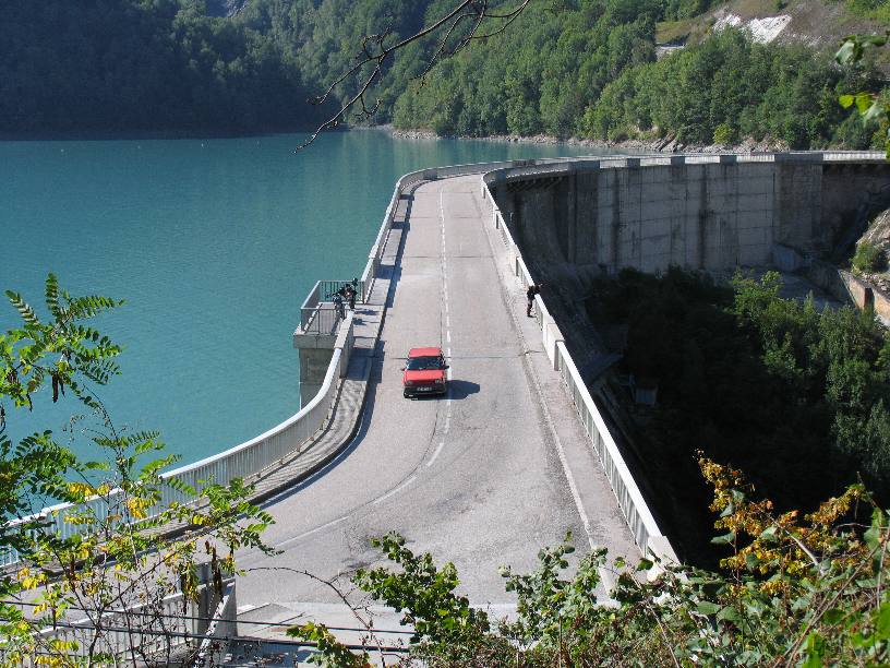 Lac de Rochemolles. Hier sprangen uns todesmutige Kühe vor die Räder. |