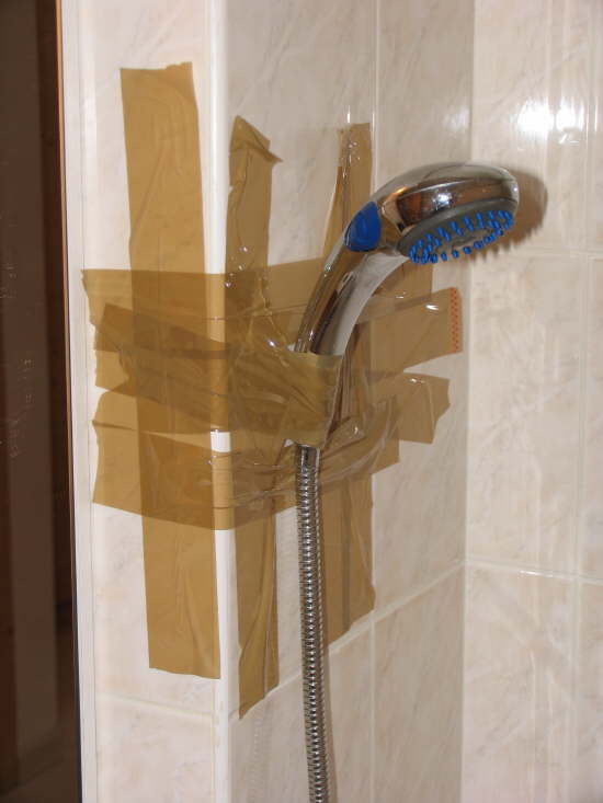 Der franz. Architekt hat die Duschstange vergessen. Endurofahrer greifen zur einfachen Lösung.