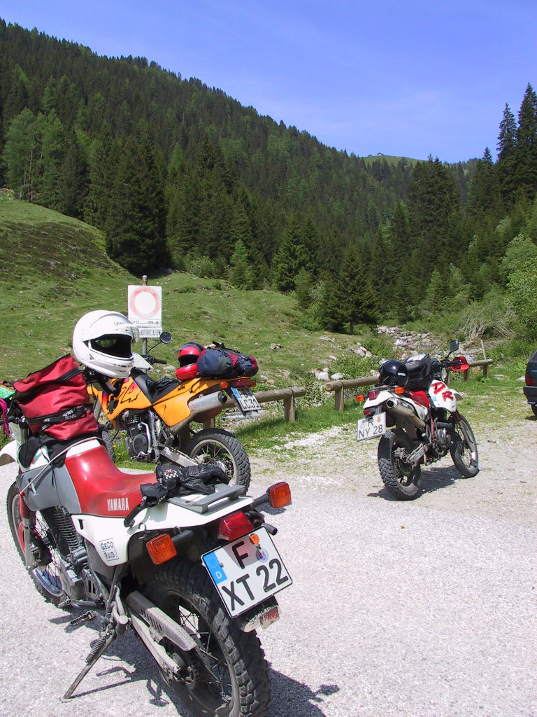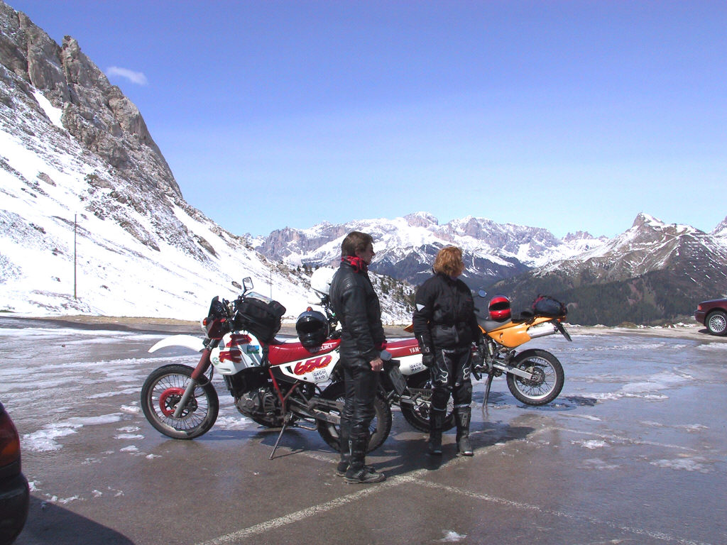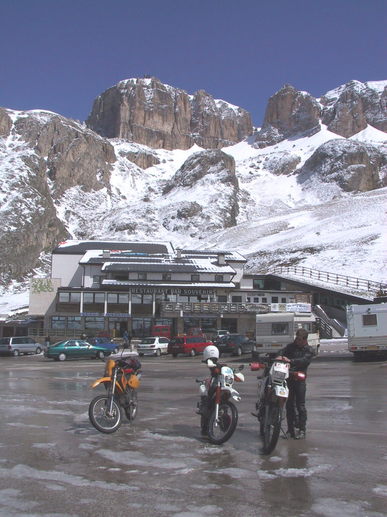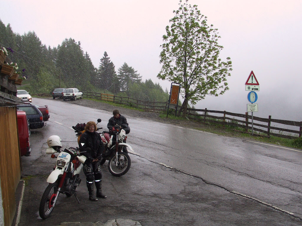 der Paßhöhe standen Autos und Motorräder und einige Fahrer